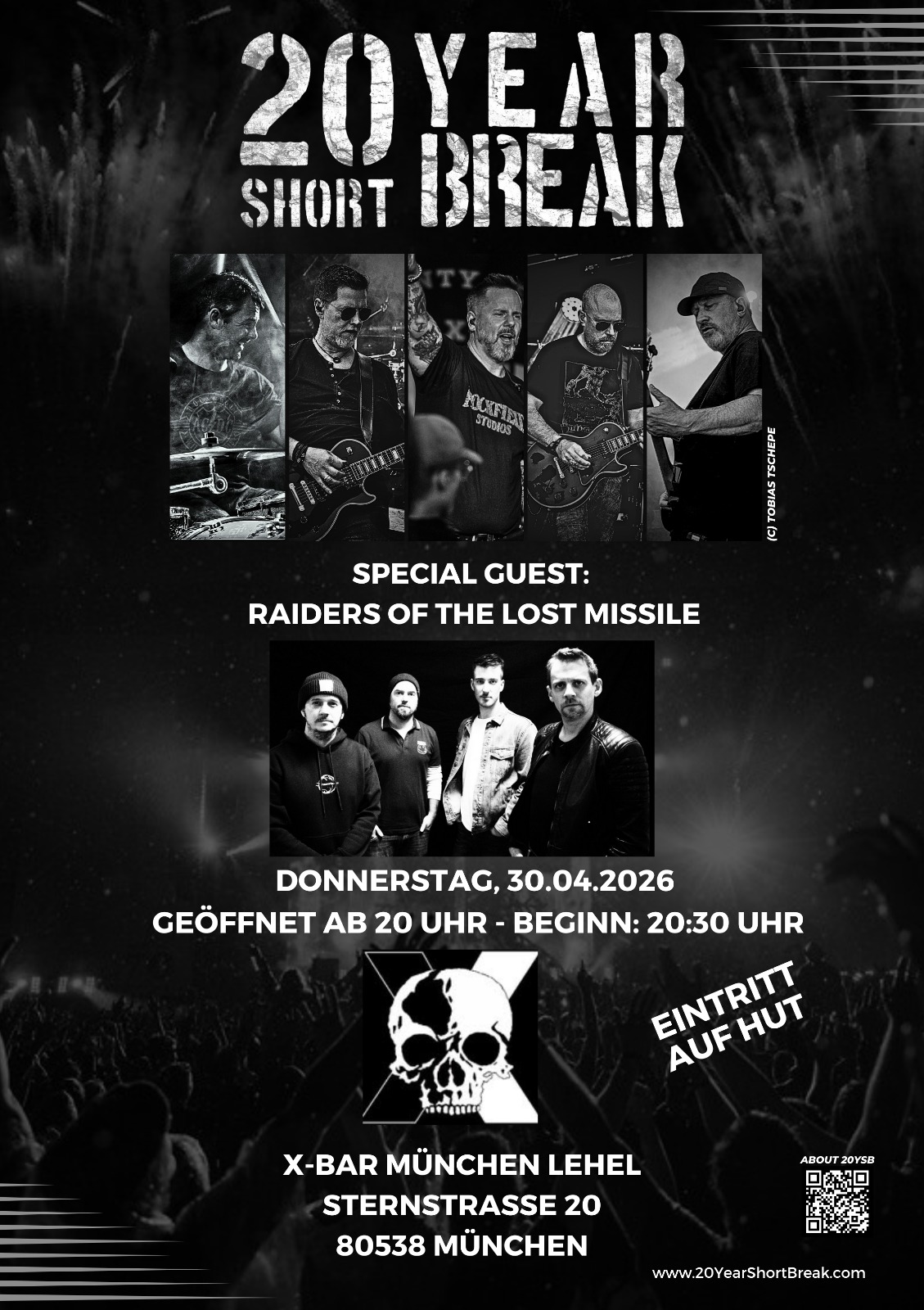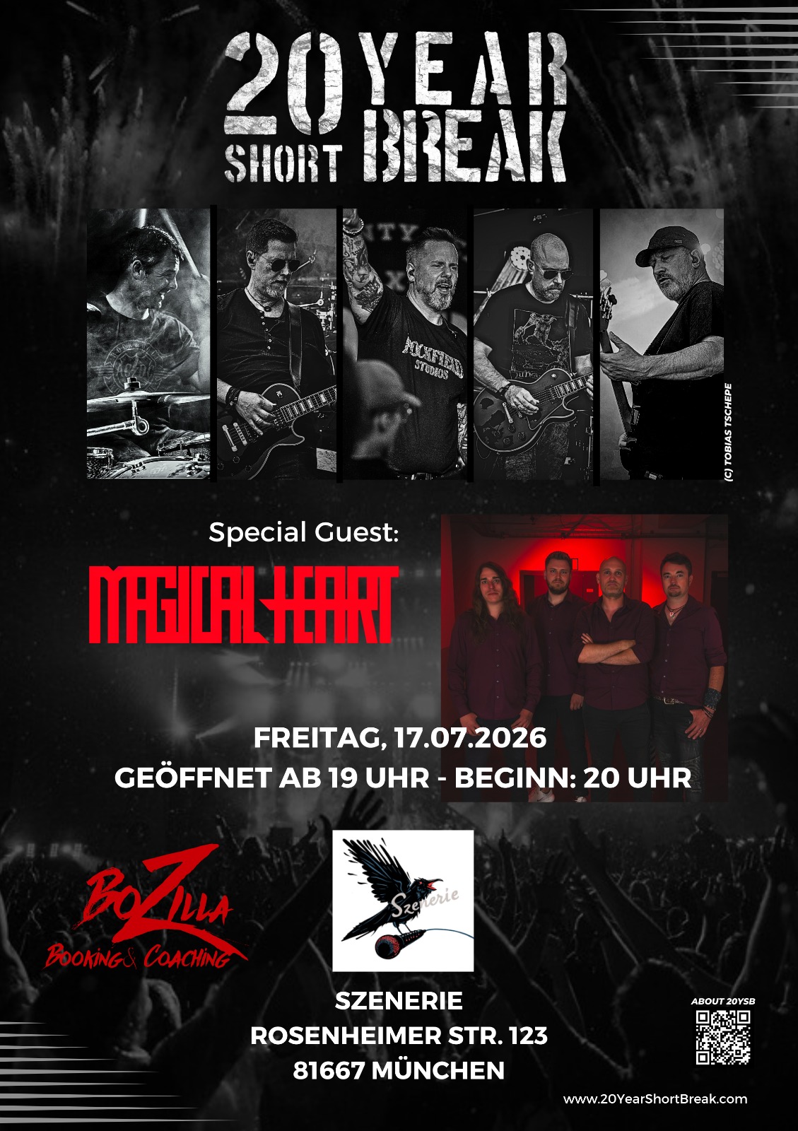 Szenerie Rosenheimer Strasse 123, München, GermanyAm Freitag, 17.07.2026, gibt es einen Abend voller handgemachtem Rock in der Szenerie.Auf der Bühne stehen 20 Year Short Break und Kings of Decay – zwei Bands, zwei unterschiedliche Facetten von Rock, vereint an einem Abend. 20 Year Short Break beschließen den Abend mit kraftvollem Rock, starken Melodien und viel Live-Energie.Kings of Decay eröffnen den […]